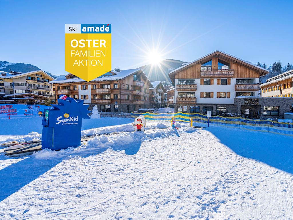*Voor kinderen geboren in 2009 of later. Kan niet worden gecombineerd met andere aanbiedingen. Geldig voor 6- tot 18-daagse skipassen, exclusief promoties, omwisseling achteraf uitgesloten. Let op: de Paasfamilie promotie kan niet worden gecombineerd met de online vroegboekbonus.